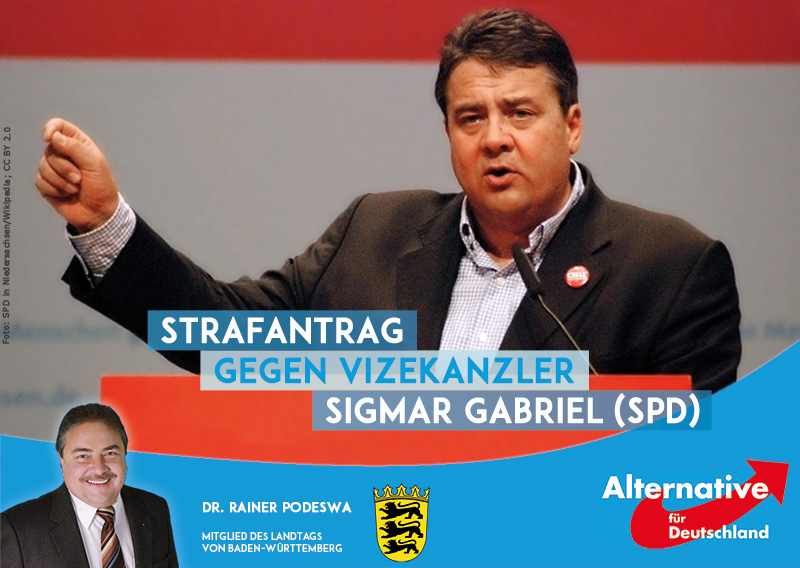 Dr. Rainer Podeswa MdL stellt Strafanzeige und Strafantrag gegen SPD-Vizekanzler Sigmar Gabriel wegen Beleidigung, Verleumdung und übler Nachrede.