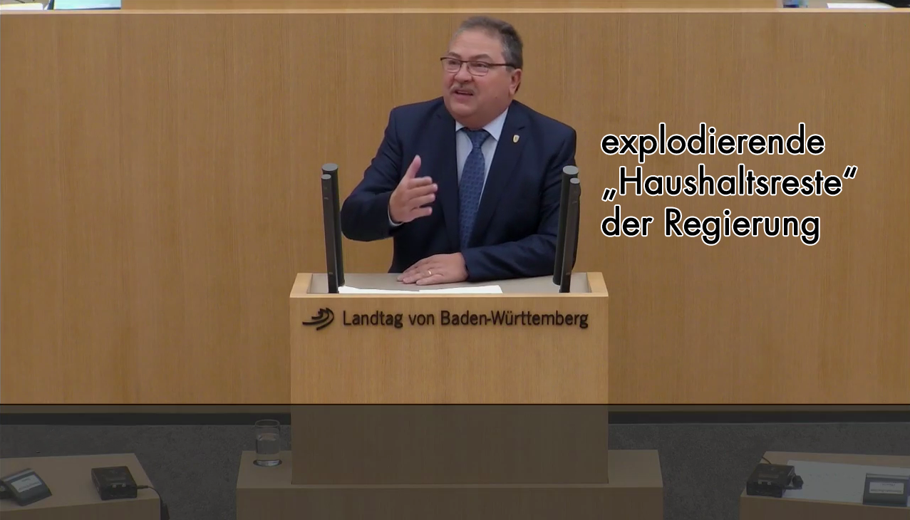 Insgesamt kam es so zu sogenannten Haushaltsresten von 2,67 Milliarden Euro im Jahr 2015, was 6% des Staatshaushaltsplans beträgt. Getoppt wurde diese völlige Fehlplanung der grün-roten Landesregierung jedoch von der folgenden grün-schwarzen Landesregierung mit 3,4 Milliarden Euro bzw. 7,3% im Jahr 2016.