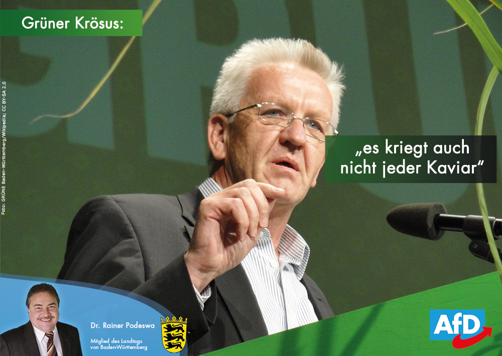 Auf die massive Kritik der AfD-Fraktion reagierte er nun (DPA vom 7.5.18): Sein Geburtstag, so Kretschmann, werde „nicht zu einer Verarmung des Landes Baden-Württemberg führen“ und „es kriegt auch nicht jeder Kaviar“.