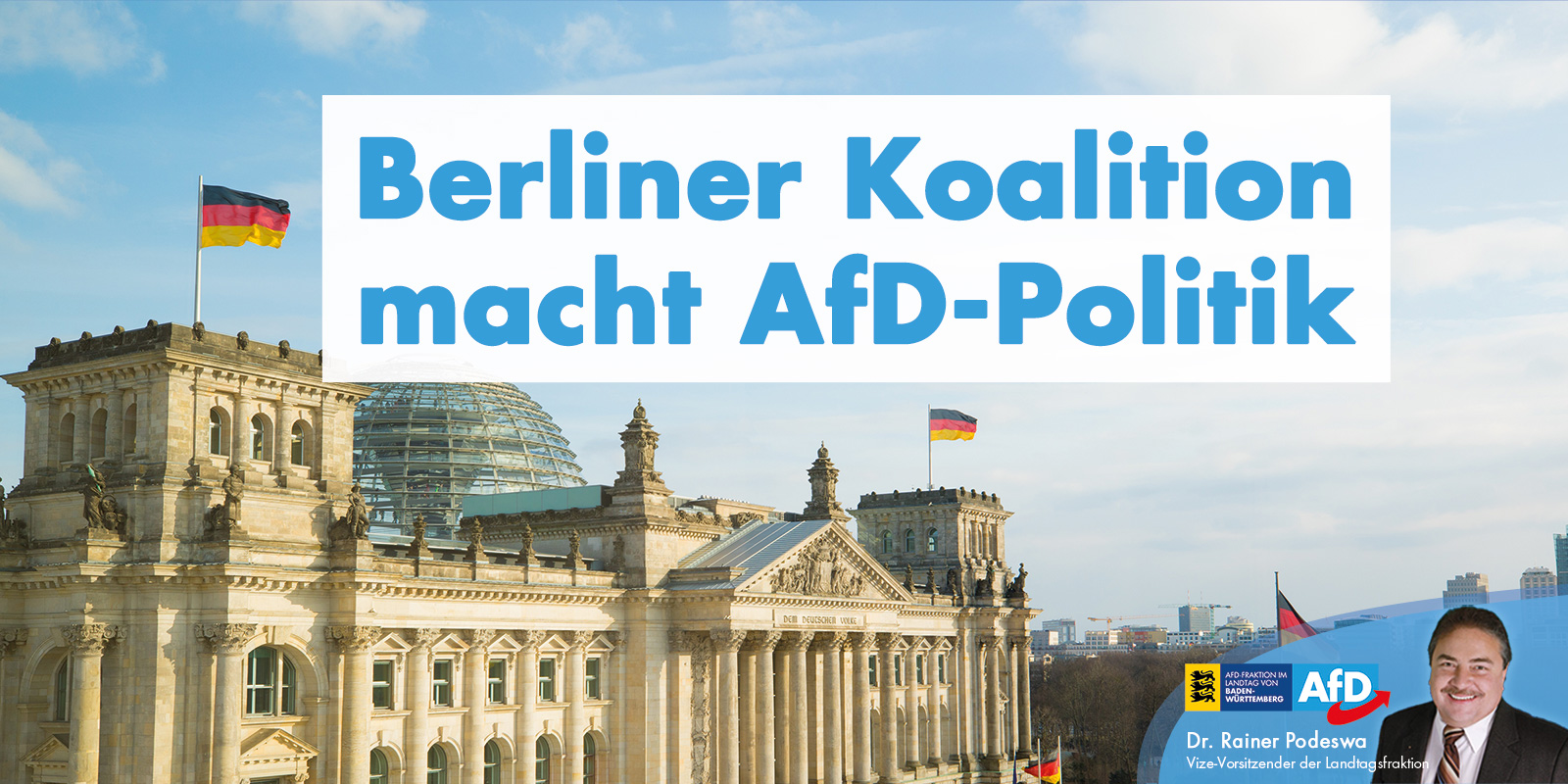 Fraktionschef Bernd Gögel MdL hat die Berliner Koalition für die Umsetzung von AfD-Politik gelobt. „Die Senkung der Mehrwertsteuer steht schon im AfD-Wahlprogramm zur Bundestagswahl 2017 und wurde dann vom DIW gleichfalls empfohlen. Ich habe sie zuletzt am 23. April angemahnt. Nun taucht sie, wenn auch befristet, als Konjunkturstimulus im Berliner Maßnahmenpaket auf. Das könnte uns freuen – wenn nicht zugleich sehr viel Unsinn beschlossen worden wäre. 300 € Einmalzahlung für Kinder, die aber muss versteuert werden. Ideologisch motivierte Prämien für E-Autos, die sich sowieso niemand leisten kann und will. Wo sind die Maßnahmen für Rentner, Geringverdiener, Arbeitslose und Kinderlose? 2,1 Millionen Deutsche stehen laut einer Kantar-Umfrage vor der Pleite. Mein Fazit: Undurchdachtes und vor allem überteuertes Stückwerk, um vom völlig übertriebenen Lockdown abzulenken. Ein großer Wurf sieht anders aus.“