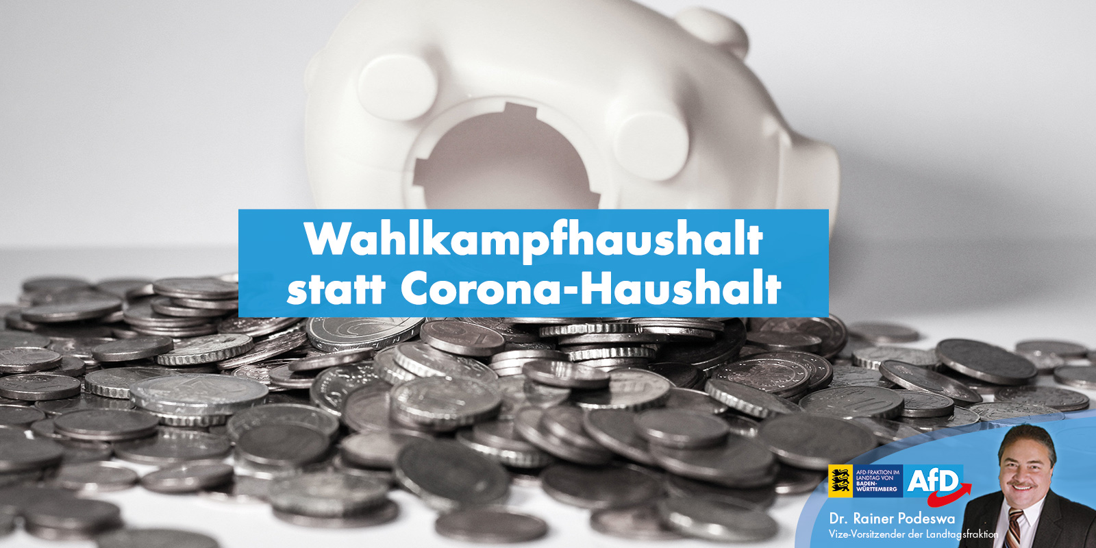Der finanzpolitische Fraktionssprecher Dr. Rainer Podeswa hat der grünschwarzen Landesregierung ideologische Geldverschwendung vorgeworfen. „Die Regierung will im dreistelligen Millionenbereich Kredite aufnehmen, um die ‚Transformation der Automobilindustrie und den Klimaschutz‘ umzusetzen. Sie gibt also mit beiden Händen Geld aus, das sie nicht hat. Die Corona-Krise ist nur ein Vorwand, um kurz vor der Neuwahl im März 2021 Schaufenster-Politik zu betreiben. Und sie betreibt diese Politik auf dem Rücken kommender Generationen. Die sogenannte ‚Transformation der Automobilwirtschaft‘ durch die Landesregierung ist eine Travestie und führt in Baden-Württemberg zu Arbeitslosigkeit und Elend. Tatsächlich müssen wir CDU-Schwerpunkte bei der Politik der Landesregierung mit der Lupe suchen. Das einzige, was schwarz ist an dieser Landesregierung ist, das ist die Zukunft für Baden-Württemberg, wenn sie weiter regiert.“