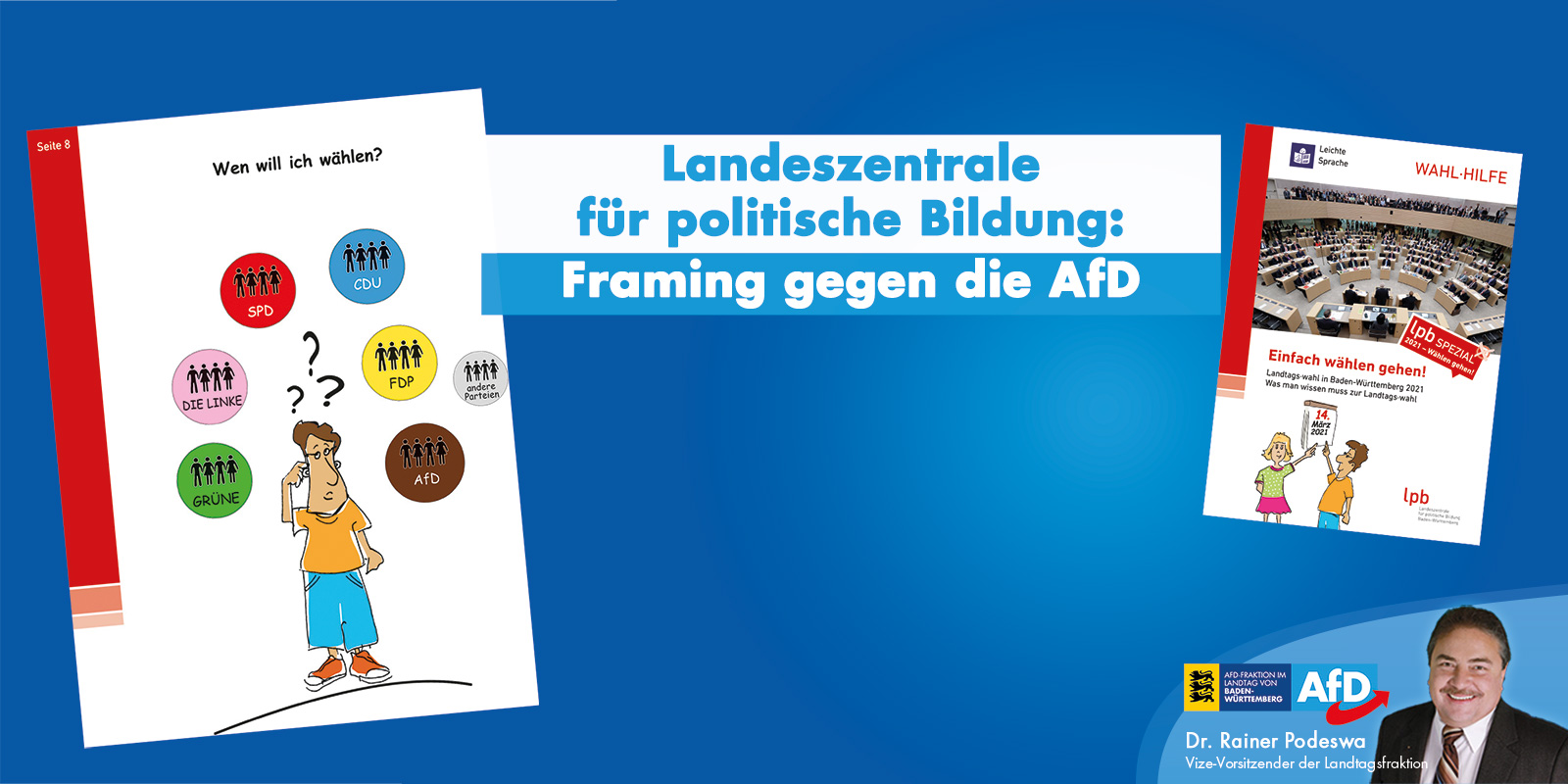 Fraktionsvize Dr. Rainer Podeswa hat in seiner Eigenschaft als Mitglied im Kuratorium der Landeszentrale für politische Bildung Baden-Württemberg deren „Spezial“ zur Landtagswahl 2021 scharf kritisiert. „Mit dem ‚Spezial’ will die Landeszentrale in einer Auflage von 20.000 Stück in leichter Sprache darüber aufklären, ‚was man wissen muss zur Landtagswahl‘. Dabei betreibt sie auf Seite 8 unter der Frage ‚Wen will ich wählen?‘ ein erbärmliches Farben-Framing, das aus der CDU die AfD werden lässt. Das ist unerträgliche Manipulation und plumpe Stimmungsmache.“